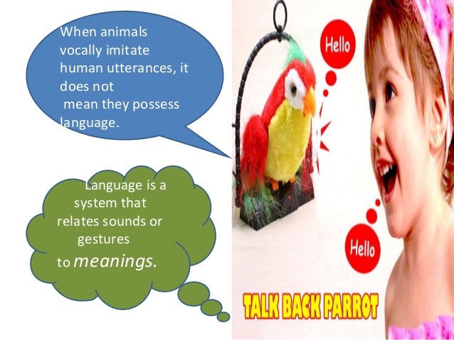 Human language has some pro perties that make it differe nt fr om animal communication system. This is very hepful thank you notice bitielon may 12, 2020: Turning hand gestures into meaning certainly displays arbitrariness. Excellent article, thanks for the help yusuf shitu aliyuon march 09, 2020: Start studying linguistics chapter 2 animals and human language. For instance, some parrots can learn to imitate the sounds of human language with a very high degree of accuracy. Duality, creativity, displacement, interchangeability, cultural transmission, arbitrariness, and biology. See full list on owlcation.com Animal communication is a closed system. I am really appreciate with this article, which maks students'. Creativity yet another distinctive feature is creativity. Language is so fundamental to human life that it's hard to imagine what life would be like without it. Hoda mon june 15, 2020: